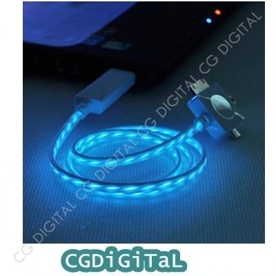 Cable cargador luminoso para iPhone 4, 4S, iPod, iPad, Samsung o cualquier dispositivo con entrada micro o mini USB.